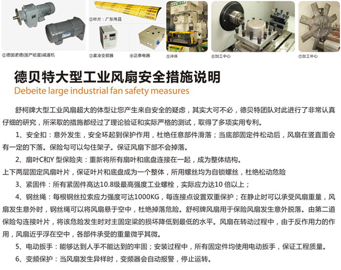 玉環(huán)德貝特大型工業(yè)吊扇已通過(guò)ISO/TS16949:2002質(zhì)量管理體系認證(不含產(chǎn)品設計),產(chǎn)品質(zhì)量已達到國際先進(jìn)水平。
